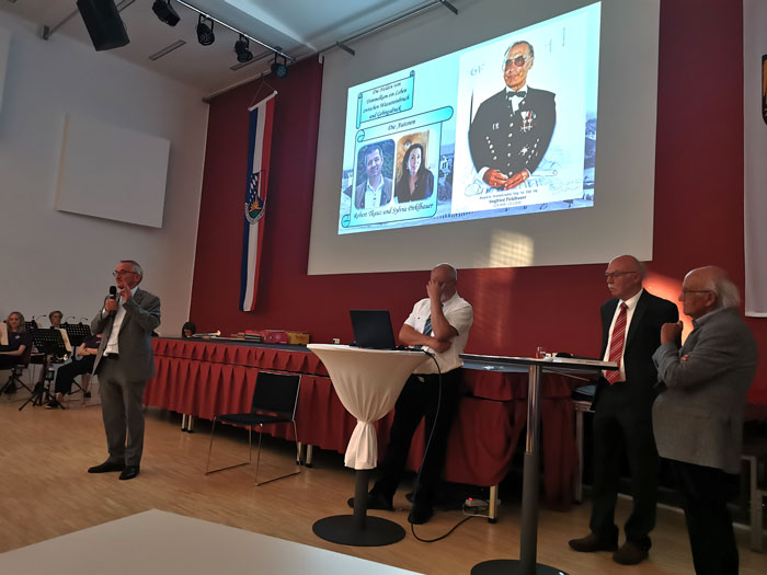 Buchpräsentation im großem Kreis.